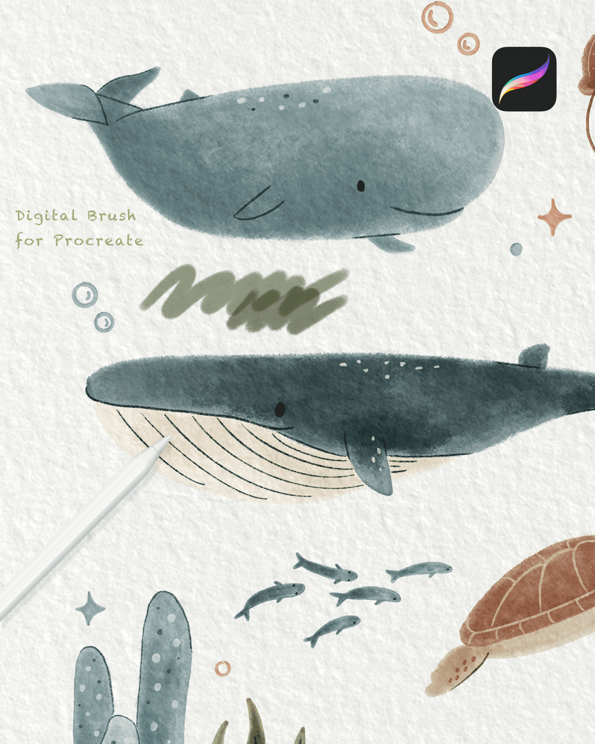 This brush is perfect for expressing adorable and playful doodles! Don’t the animals drawn with crayons look so cute? It’s my go-to brush when I want to create artwork that takes me back to childhood!