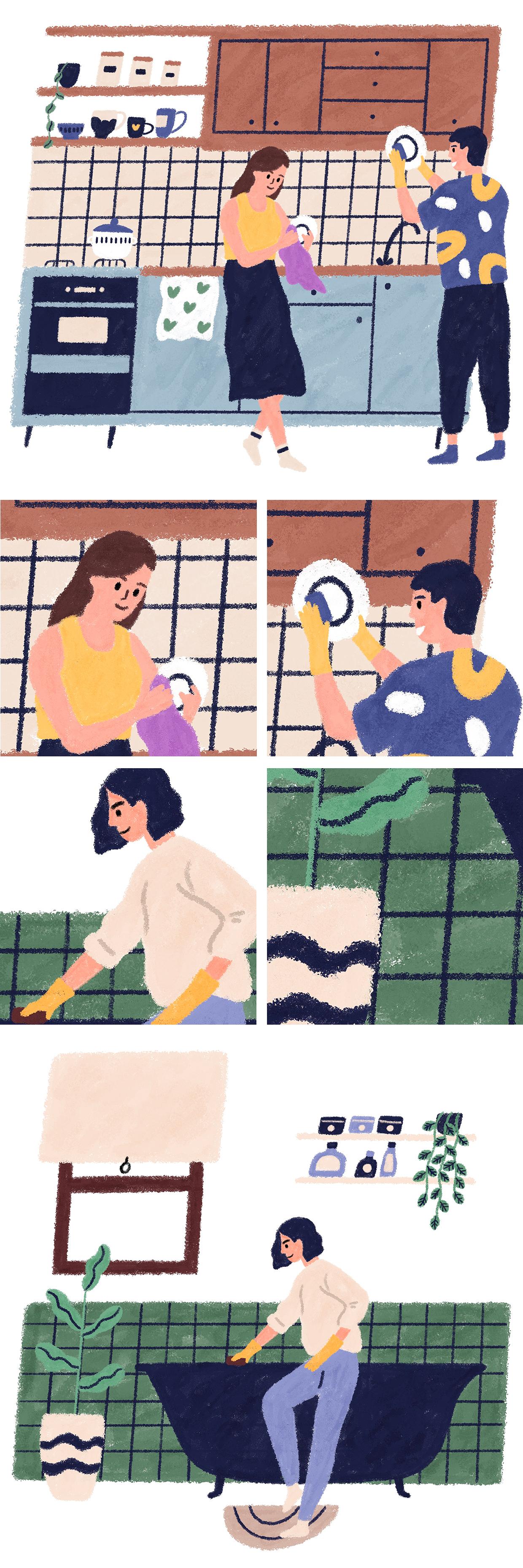 Oil pastels have a dense, thick texture. In the Doodle Brush set, we’ve slightly reduced the original oil pastel’s heaviness and oily feel, adding a more mild touch, so it blends well with a variety of styles.